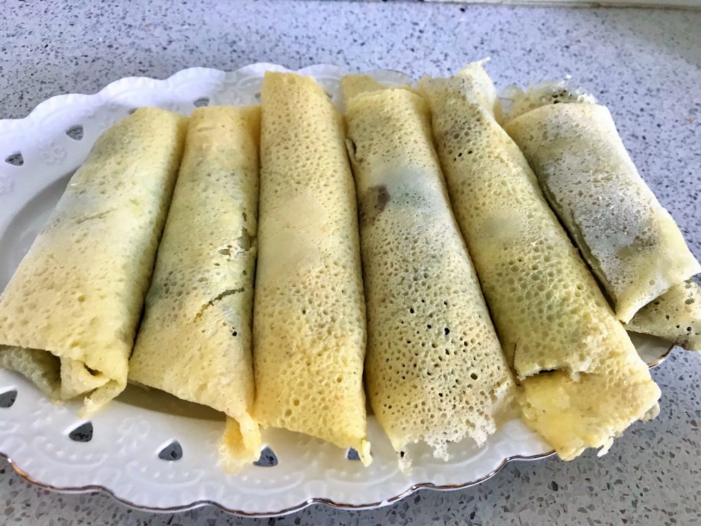 מערום של חביתיות מגולגלות ומקופלות