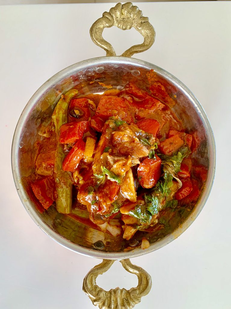 - במהלך הבישול מפזרים מעל פטרוזיליה וכוסברה, טועמים את הרוטב ומתקנים טעמים, לא מתפתים להוסיף מים וזמן.