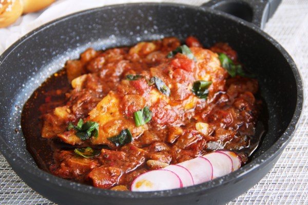 השתמשתי בבישול בכלי עם ציפוי אבן שיש שחור המקורי של פוד אפיל #springappeal, מדובר במחבת השיש השחור המקורי של פוד אפיל, טכנולוגית משטח השיש מאפשרת להשתמש במינימום שמן וניקוי קל. המנה הוגשה במחבת קטנה מחומר זה.