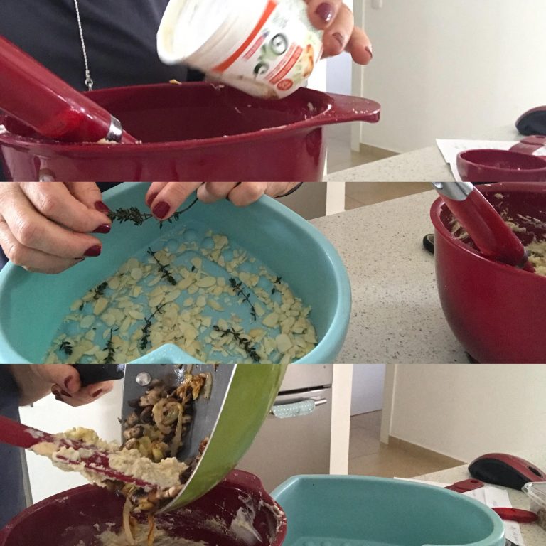 5-מערבבים את יתר החומרים עד שנוצרת עיסה אחידה ויוצקים לתבנית.