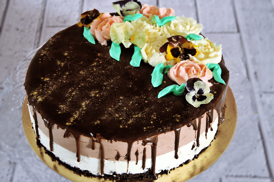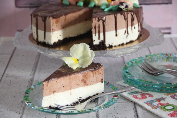 עוגת שכבות גבינה ומוס שוקולד