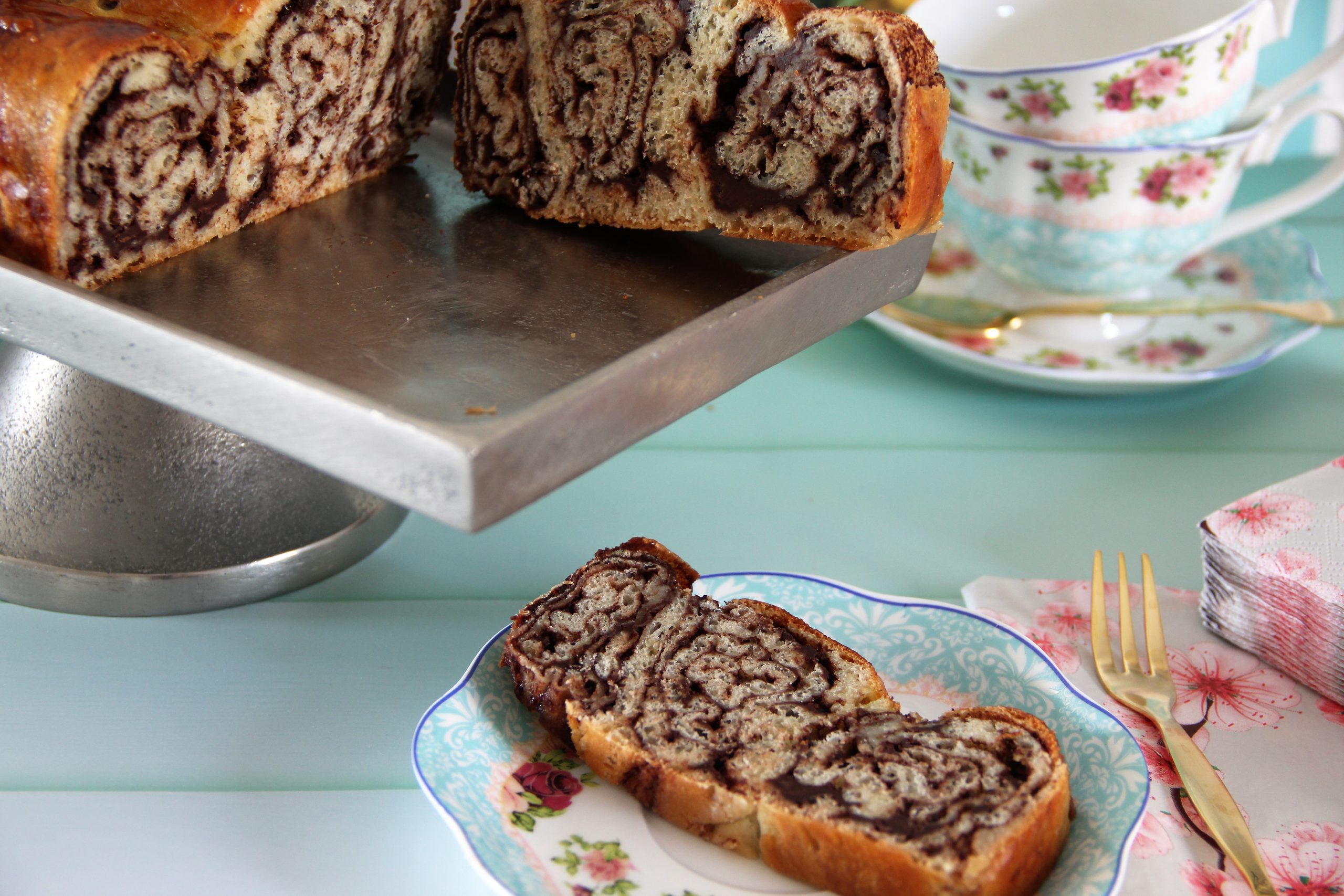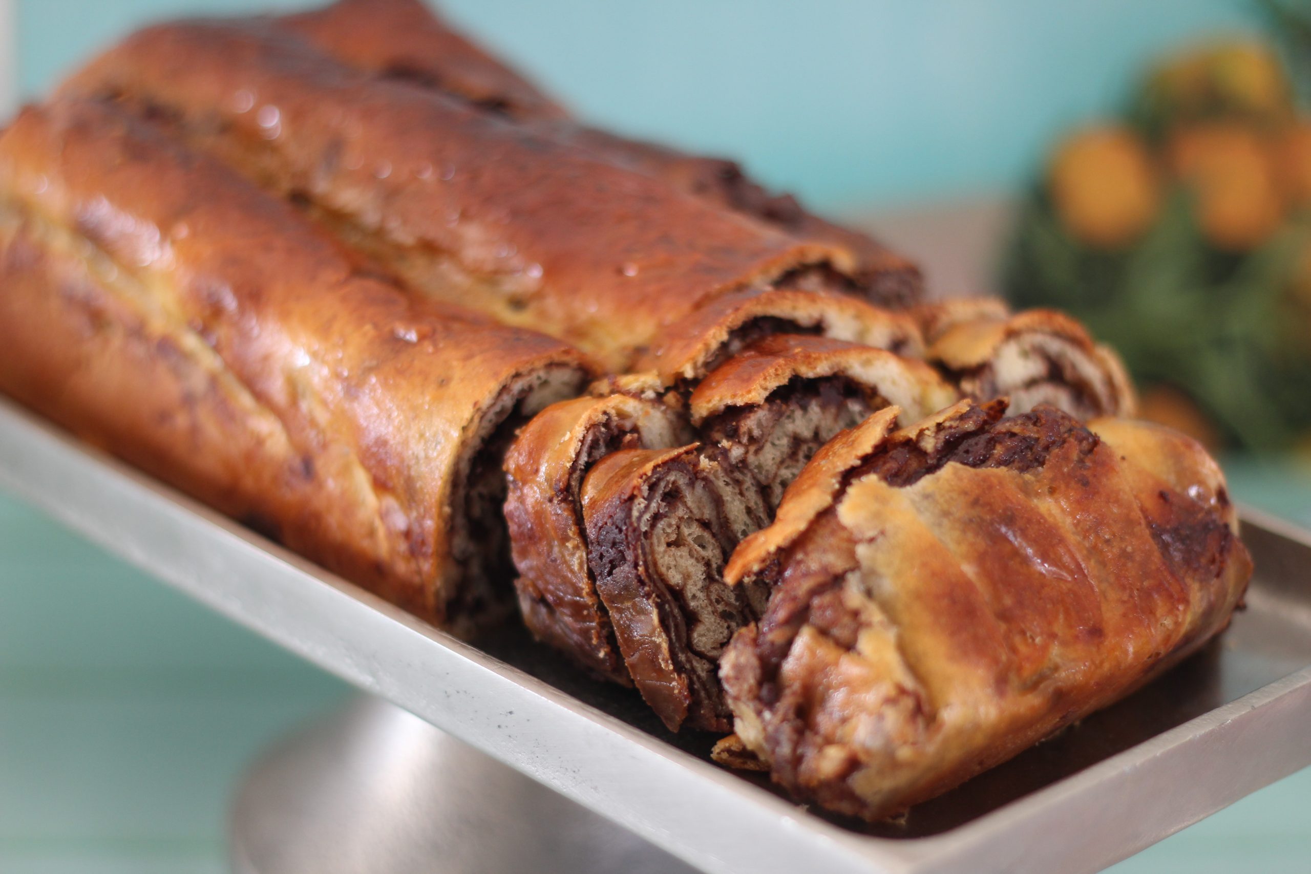 את הרעיון לכריכת העוגה ראיתי לראשונה אצל הקונדיטורית נטלי לוין והרעיון קסם לי וכאשר קראתי את הפוסט ראיתי שהיא הפנתה את מקור המתכון לבלוג  bake street  ושם העוגה המוכר: potic-povitica אשר מקורה בקרואטיה וסלובקיה וידעתי שבמהירה אכין את המתכון. בשלב הראשון הכנתי את העוגה לפי מתכון השמרים שאני אוהבת להכין וקיבלתי תוצאה מאוד טעימה עם מלית שונה מהרגיל אותה נהגתי להכין והפעם הוספתי אבקת נוגט (אותה תוכלו למצוא בחנויות המתמחות בחומרי גלם לאפייה, אל תוותרו) אך עדיין לא הייתי  מסופקת משום שלא היו מספיק שבילים וברור לי מדוע, משום שהכמות שלי היתה כפולה ולכן היתה תפיחה גבוהה מידי לתבנית. תוכלו להכין עם מתכון שלכם המכיל 500 גרם קמח ואז תכינו 2 עוגות ב-2 תבניות.