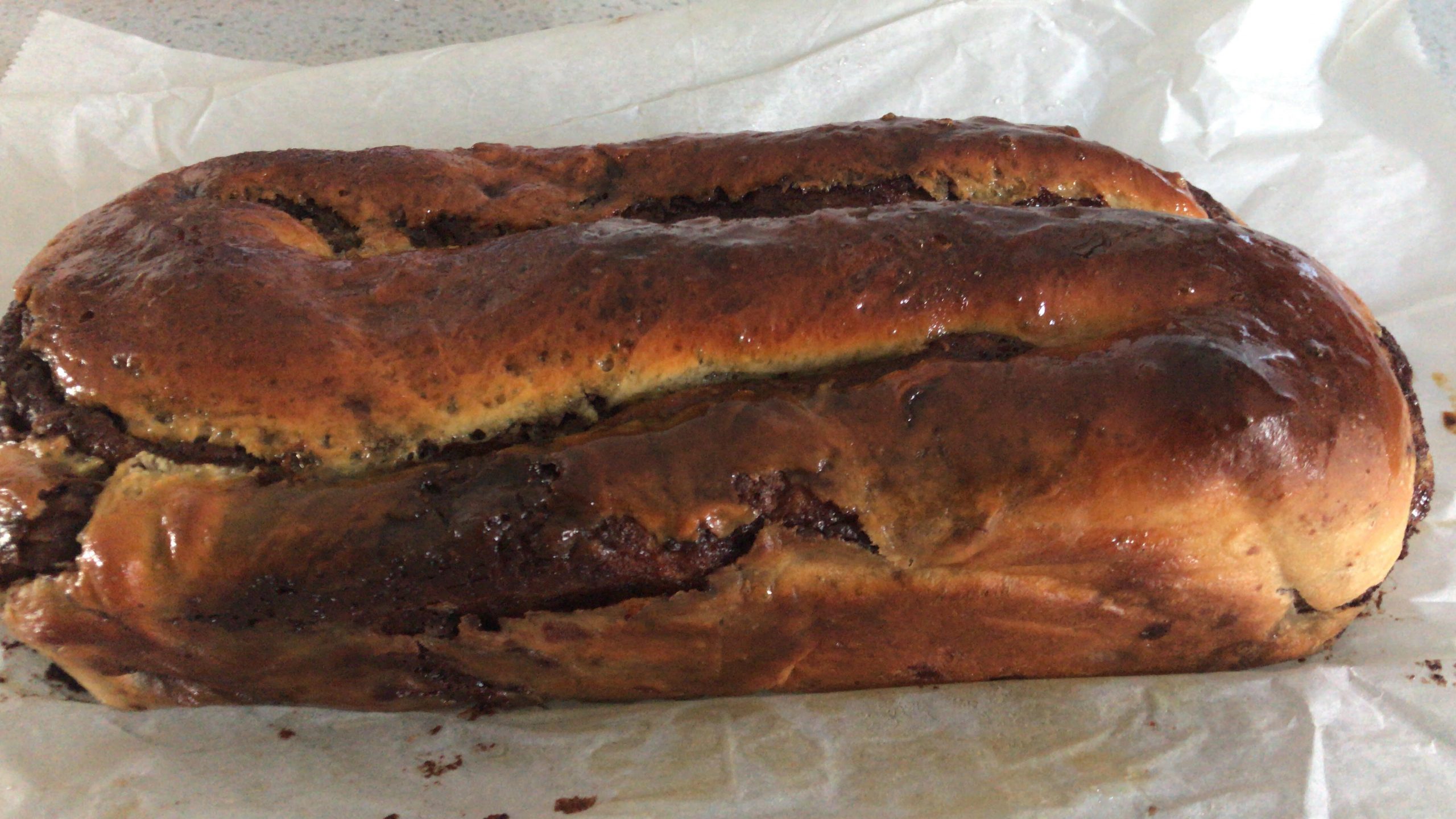 החלטתי להכין שוב את הבצק והפעם חצי כמות מהמתכון שאני נוהגת להכין ואכן צדקתי, התקבלו מלא מלא שבילים, בדיוק כפי שרציתי. מהמנה מתקבלת עוגה  גדולה מאחר ומכינים רולדה גדולה אותה מגלגלים לשני הצדדים בצורת S וכך לאחר פריסה רואים את כל השבילים.