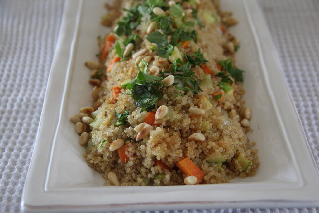 רציתי קצת לגוון בארוחת שישי והחלטתי להכין תוספת קצת אחרת. הכנתי קינואה ועירבבתי עם מגוון ירקות. המנה חמה ומנוקדת בשלל צבעים שהעניקו הירקות.