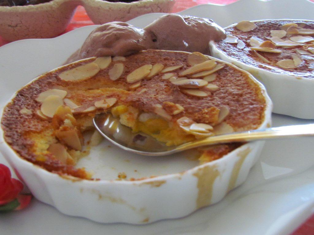 הקינוח מוגש חמים ולכן לימים אלה כל כך מתאים. במקרה זה השתמשתי באפרסקים ואתם יכולים לגוון ולהשתמש בכל פרי רך אחר.