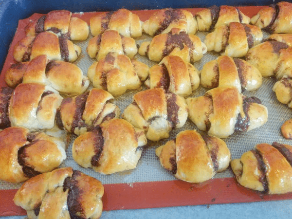 -מגלגלים כל משולש לסהרון ומניחים על תבנית מרופדת בנייר אפייה ומתפיחים התפחה כפולה, בקיץ כחצי שעה ובחורף כשעה.