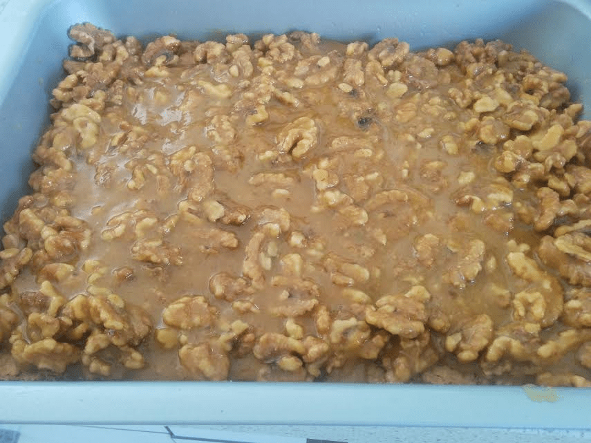 -מוסיפים את האגוזים, מערבבים ומצננים.