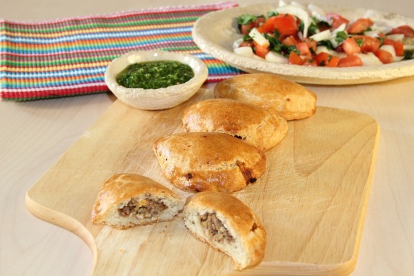 אמפנדס במלית בשר העשוייה ממעטפת של בצק פריך ובתוכה מלית בשר המוגשת עם צ'ימיצ'ורי וסלט רענן או כתוספת לארוחה