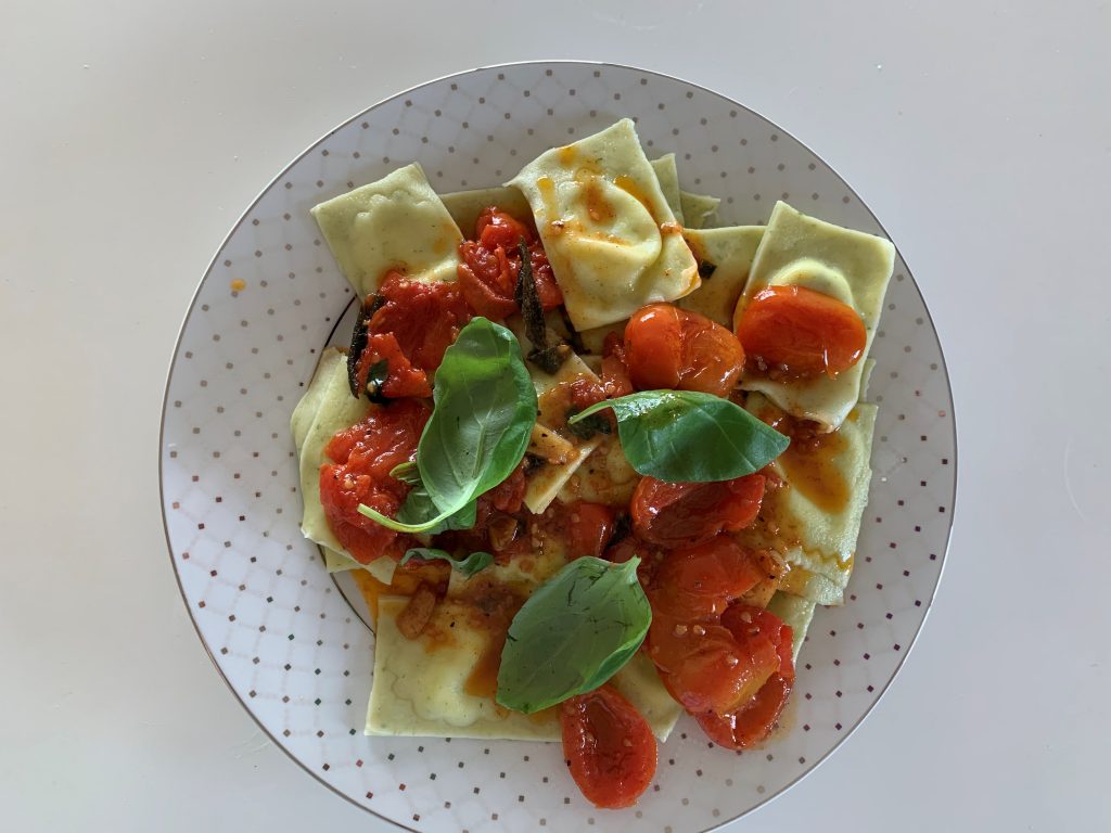 רביולי הום מייד במלית גבינה ורוטב עגבניות שרי