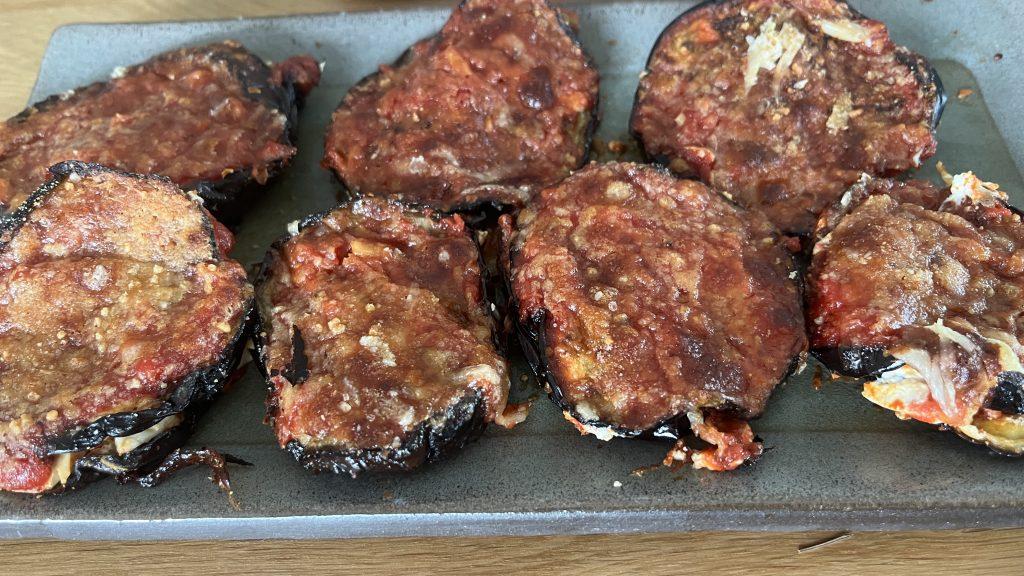 כריך אפוי מזוג חצילים ממולא בגבינה ומצופה כפיצה