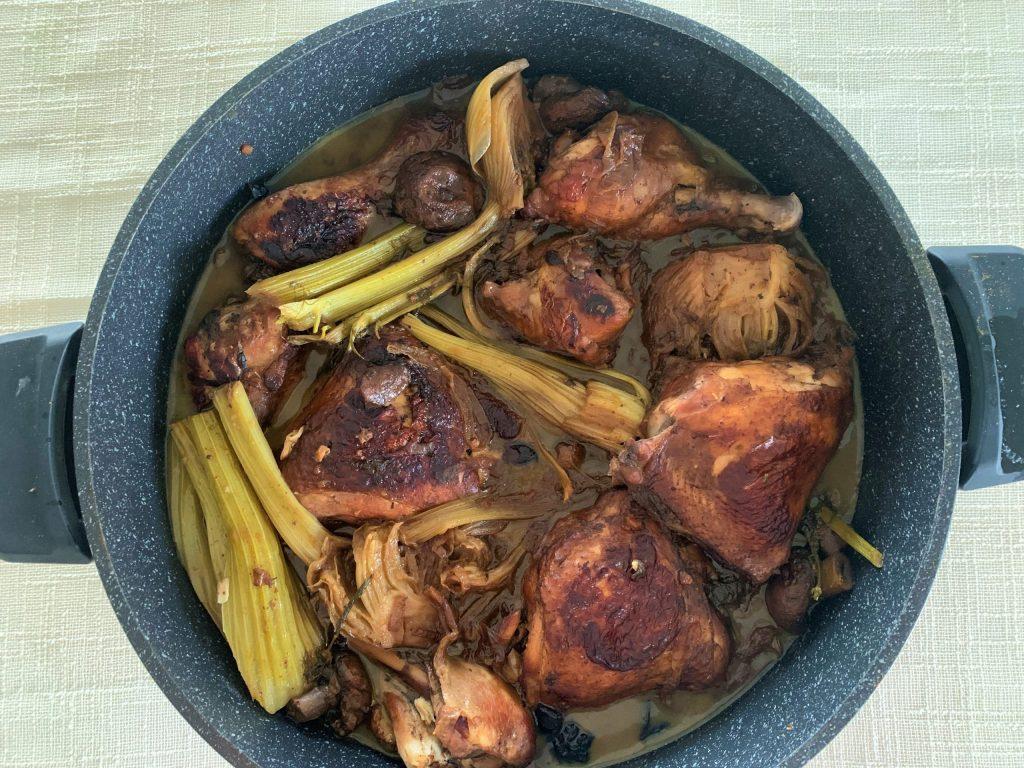 עוף שלם אפוי בתנור בסיר ברזל, דבר המעניק לו השחמה מדהימה וטעם מקורמל מתקתק