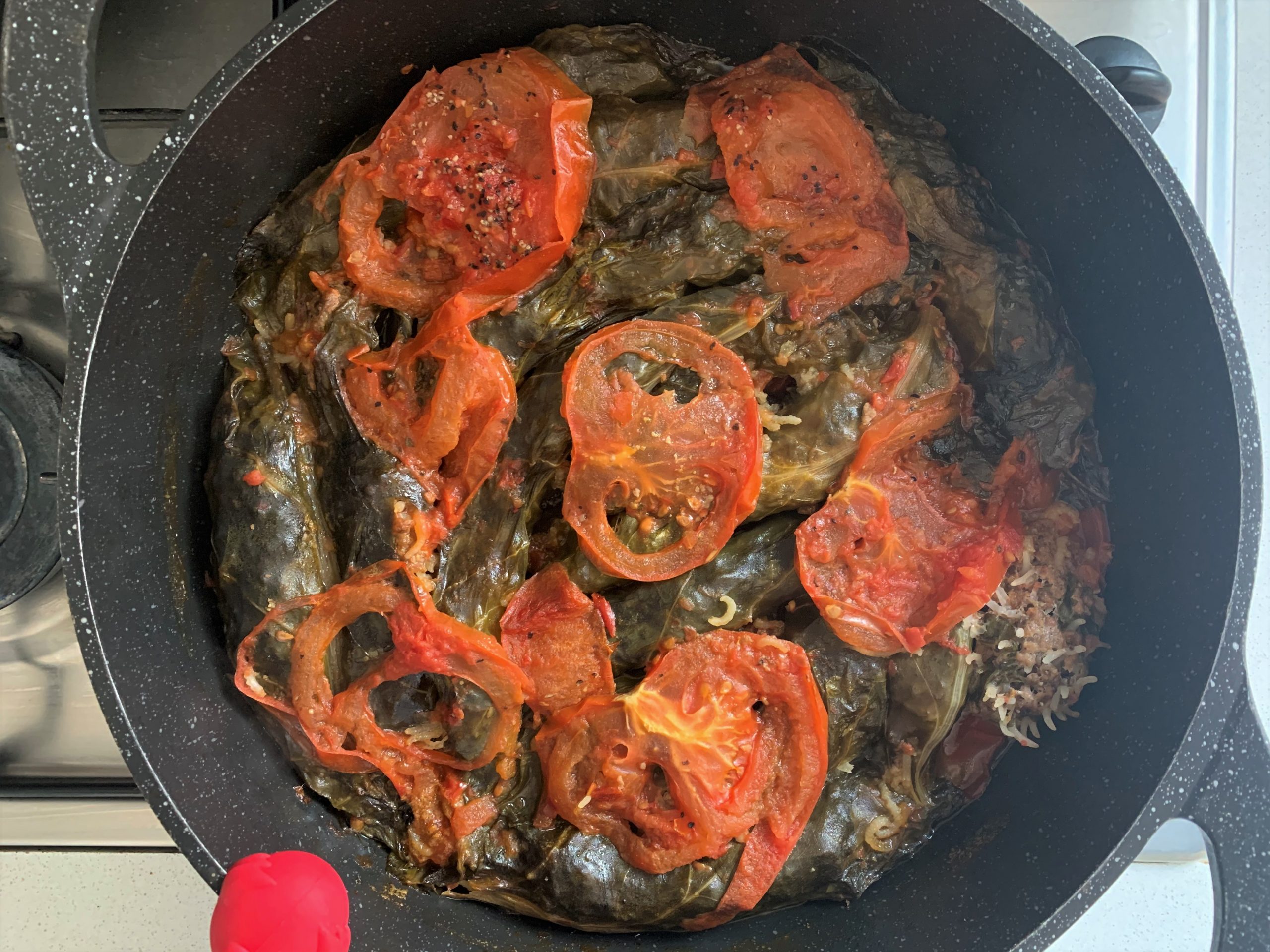 קציצות כרוכות בתוך פרוסות של כרובית ומבושלות ברוטב עגבניות, התוצאה עסיסית ומאוד טעימה