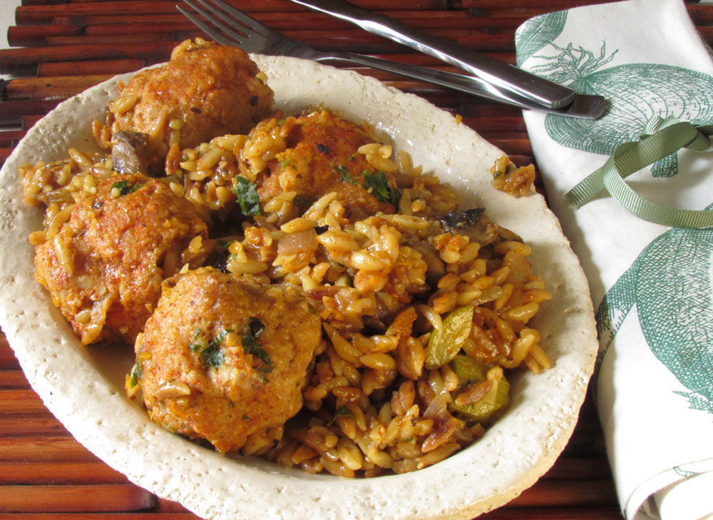 קציצות עוף של אמא ולצידן קליסקלך שהן בעצם הניוקי הפולני. מנה עיקרית פלוס תוספת