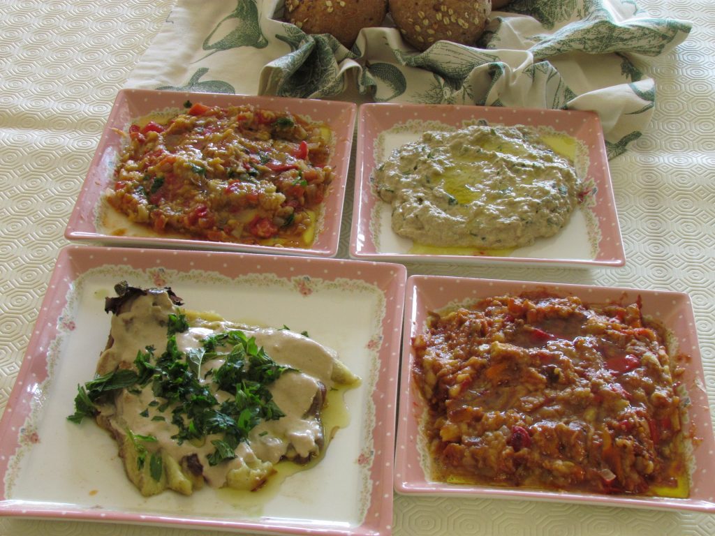 4 מתכונים לסלט חצילים קלויים, עם טחינה, פלפלים, עגבניות או עשבי תיבול. מעולה קחת לפיקניק או על האש וכמובן עם לחם בארוחה