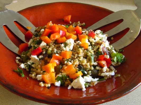 סלט קוסקוס וירקות קלויים, המהווה בעצם מנה עיקרית או תוספת על שום מרכיביו
