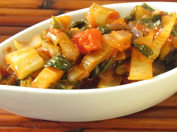 סלט מנגולד חמצמץ וחריף במידה, בתוספת עגבניות ומגוון תבלינים. טעים חם כתוספת לצד המנה העיקרית או קר כסלט