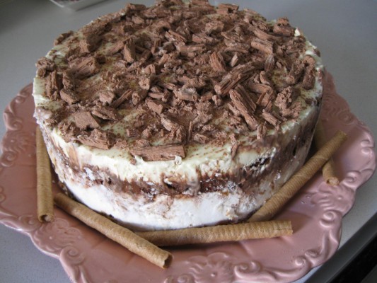 עוגת גבינה קרה עם מרקיזים שוקולד מריר ולבן, שכבות של תענוג