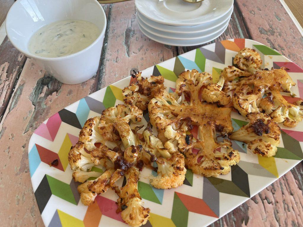 כרובית פרוסה כמו סטייק ומשוחה ברוטב
