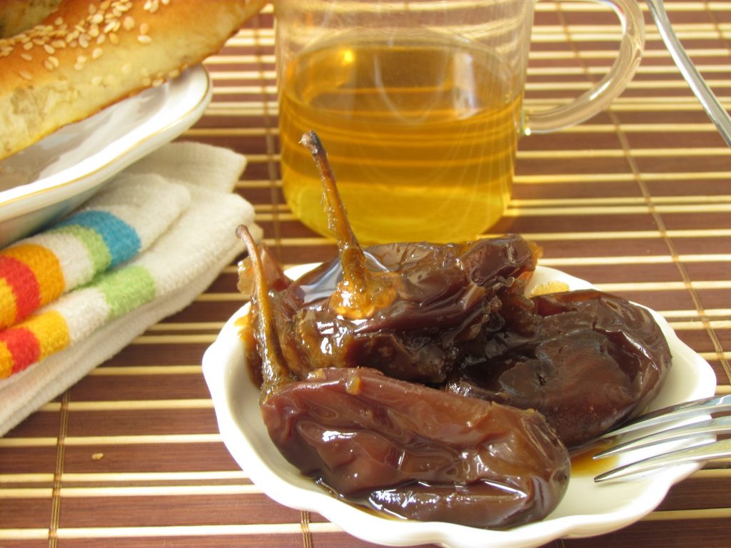 ריבת חצילונים קטנטנים, מתובלת בקינמון, ציפורן ואגוז מוסקט ובסיום התוצאה מתקתקה וטעימה, מוגשת בערב המימונה וכמובן בכל עת שחפצים